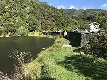 European settlers recognised the value of the area as a water source in the 19th century. An earth dam was constructed in 1880, and a pipeline was laid to Wellington.[1] This complemented the country's first public water supply dam, completed in Karori west of the city two years earlier.[4]