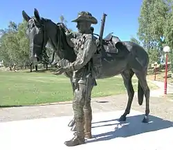 A memorial statue to the Waler Light Horse was erected at Tamworth, New South Wales as a tribute to the men of the ANZAC Corps who served in the Boer, Sudan and First World Wars. This memorial was constructed at a cost of $150,000, funded by grants from Federal and State Governments, the Tamworth Regional Council, Joblink Plus and donations from business houses, property owners, RSL Members and the community. It was designed and created by sculptor Tanya Bartlett from Newcastle, New South Wales. The military equipment is identical to that used in the First World War. Forty-seven light horse re-enactment riders and the 12th/16th Hunter River Lancers took part in the unveiling by Major General William B. "Digger" James AC MBE MC (Retd) on 29 October 2005.[4]