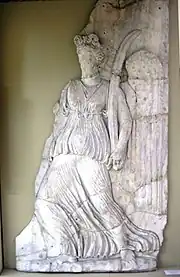 The main gate itself was covered by an outer wall, pierced by a single gate, which in later centuries was flanked by an ensemble of reused marble reliefs.[61] According to descriptions of Pierre Gilles and English travelers from the 17th century, these reliefs were arranged in two tiers, and featured mythological scenes, including the Labours of Hercules. These reliefs, lost since the 17th century with the exception of some fragments now in the Istanbul Archaeological Museum, were probably put in place in the 9th or 10th centuries to form the appearance of a triumphal gate.[70][71] According to other descriptions, the outer gate was also topped by a statue of Victory, holding a crown.[72]