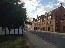 Notable buildings on the north-east side include Dorothy Wilson's Hospital, built in 1812; the 18th-century houses at 6, 8, 24 and 26-28 Walmgate; The Watergate Inn pub; a 15th-century timber-framed building at 32 Walmgate; 34 Walmgate, built about 1700; 68-70 Walmgate, and a warehouse behind 72 Walmgate, also of 18th-century origin; St Margaret's Church, now the National Centre for Early Music; and the Bretgate Flats, built in 1979, and described by Neave as "most successful". On the south-west side are the 15th-century Red Lion pub, now often described as lying on Merchantgate; the 18th-century 9 and 11 Walmgate; 19 Walmgate, with a 16th-century wall; 23 and 25 Walmgate, both of 17th-century origin; 35-37 Walmgate, built in the 16th-century; the 15th-century 77 Walmgate; St Denys' Church; and Bowes Morrell House, built about 1400.[1][5]