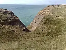 Walpen Chine is a geological feature on the south west coast of the Isle of Wight, England. It is west of the village of Chale. It is a sandy coastal ravine, one of a number of such chines on the island created by stream erosion of soft Cretaceous rocks. It leads from the 190 feet high clifftop next to the Isle of Wight coastal path to a knickpoint approximately halfway down the cliff face above Chale Bay beach.