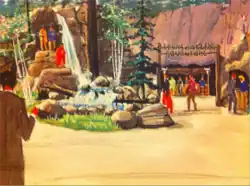 The entrance to the park would have been similar to Disneyland's Main Street, U.S.A., with one side of the street based on Old St. Louis, and the other based on Old New Orleans.[2] Disney planned to utilize the Audio-Animatronic technology that had recently been developed by his company for the New York World's Fair. The top floor of the park would have housed a banquet hall, restaurant, lounge, and bar, overlooking the Mississippi River, in addition to having concession stands and shops throughout the park.[2] Several classic Disneyland and Disney World attractions were originally conceived for the St. Louis park, including what would later become Pirates of the Caribbean, the Haunted Mansion, and a "Western Riverboat" ride, whose design was later incorporated into Big Thunder Mountain Railroad.[2]