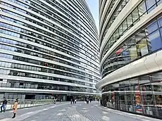 Wangjing SOHO (Chinese: 望京SOHO; pinyin: Wàngjīng SOHO) is a complex of three curvilinear asymmetric skyscrapers in Wangjing in Beijing, China, between central Beijing and Beijing Capital International Airport.[1] The towers contain both office and retail space. Originally the SOHO was designed as a two-tower complex but due to height concerns it was redesigned as a three-tower project featuring towers of lower maximum height.[2] One of the more than a dozen properties developed by SOHO China, the complex officially opened on 20 September 2014.[3] The tallest of the three towers is the seventh-tallest woman-designed building in the world.