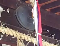 A waniguchi (鰐口) is a Japanese flat round hollow metal slit gong that hangs before the worship hall at a Shinto shrine or image hall at a Buddhist temple. By shaking the rope in front, it may be sounded by worshippers to attract the deity's attention.[1][2][3]