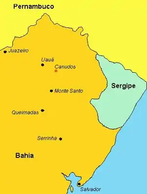 ![]() Map of northern Bahia, showing the location of Canudos | |||||||
