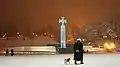 The Cross of Liberty and the Monument to the War of Independence (Estonian: Vabadussõja võidusammas) is located in Freedom Square, Tallinn, Estonia. It was opened on 23 June 2009 as a memorial for those who fell during the Estonian War of Independence, through which the people of Estonia will be able to commemorate all those who had fought for freedom and independence. The pillar is 23.5 m high and consists of 143 glass plates. The memorial incorporates the Cross of Liberty, Estonia's most distinguished award established in 1919.