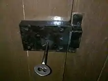 The warded lock is one of the oldest lock designs, which can be found as far back as ancient China and Rome.[1] During the Middle Ages they were used prolifically on monasteries where, because money and time were available, their complexity grew. Warded locks are still in use today in the UK and Ireland for low-security applications, and on heritage sites such as ancient monuments and churches to preserve original features, with primary security being provided by other means such as a lever lock mechanism installed in addition.[2]