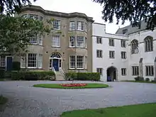 In 1897 the foundation stone of new permanent buildings was laid on the north side of the house. The first block of these buildings was opened on 1 August 1899, and they were completed by 1901.[3] They are built in the neo-Jacobean style of Doulting stone, with Bath stone dressings. Student numbers grew; in 1908 there were 40 and this later rose to 53. In 1913, after the death of Philipps, the constitution of the College was changed and one of the purposes now listed was for the actual training of missionaries. The College closed during the First World War but then re-opened and flourished. In 1927, a large extension to the south, designed by Sir Charles Nicholson, added a chapel and library.[3] The College again closed for the duration of the Second World War.
