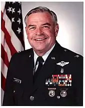 Dr. Carpenter was promoted to Command Surgeon of United States Space Command, Air Force Space Command, and North American Aerospace Defense Command In 1985.[1][2] As senior medical member of the Air Force astronaut selection board, he was responsible for the early designs of the modern space suit and the F-16 cockpit.[12] Carpenter's last assignment was as Director of the Department of Defense Medical Examination Review Board, at the USAF Academy. He retired on June 17, 1997 in the rank of colonel as a Chief Flight Surgeon with 31 years of service and more than 3,200 flying hours.[2][13][14]