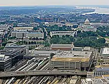 - New Jersey Avenue Station (1851–1907): Baltimore and Ohio Railroad trains arrived and left from this railroad station. It was located at the corner of New Jersey Avenue NW and C Street NW.[13]