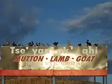 The area now known as Waterflow is traditional Navajo territory. This place was called Chʼį́įdii Łichííʼ (Red Devil) in reference to Walter Stallings who operated a trading post in the area;[4] nowadays, Tséyaa Akʼahí (beneath-rock oil) seems to be another designation in reference to the nearby oil fields, as can be seen on billboards in the area (pictured).