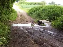 A track crosses the Wateringbury Stream by means of a ford at TQ 680 531. 51°15′08″N 0°24′30″E [10]