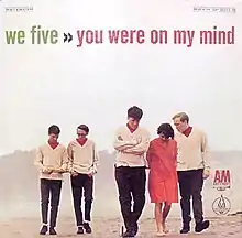 We Five was a 1960s folk rock musical group based in San Francisco, California. Their best-known hit was their 1965 remake of Ian & Sylvia's "You Were on My Mind", which reached No. 1 on the Cashbox chart, #3 on the Billboard Hot 100, and #1 on the Adult Contemporary chart. The original group split after recording their second album in 1967, but a re-formed band produced three more albums between 1968 and 1977.