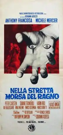 Web of the Spider (Italian: Nella stretta morsa del ragno) is a 1971 horror film directed by Antonio Margheriti. The film is about the writer Alan Foster (Anthony Franciosa) who accepts a bet from Edgar Allan Poe (Klaus Kinski) and his friend Thomas Blackwood (Enrico Osterman) to stay a night in Blackwood's castle. At the castle, Foster meets Blackwood's sister Elisabeth (Michèle Mercier) and Julia (Karin Field). Foster has sex with Elisabeth and wakes up to find that she was stabbed by someone whose body vanishes, allowing Foster to realize the house is possessed by ghosts.