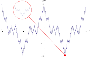 The minimum value of for which there exists such that these constraints are satisfied is . This construction, along with the proof that the function is not differentiable over any interval, was first delivered by Weierstrass in a paper presented to the Königliche Akademie der Wissenschaften on 18 July 1872.[3][4][5]
