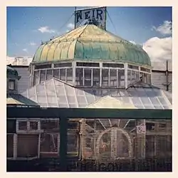 Weir Greenhouse is a historic greenhouse located across the street from the main entrance of Green-Wood Cemetery in Sunset Park, Brooklyn, New York City. It was designed by George Curtis Gillespie and built in 1895 by James Weir, Jr., a Brooklyn florist who had been in business for 50 years when he built the greenhouse for the business he operated with his son and grandson.[2] It is a rectangular, wood frame and galvanized iron building with projecting bays and domes in the Victorian commercial style. The main entrance is set at an angle to the street corner and is octagonal in form. The rooftop features an octagonal cupola with a ball finial. Attached to the greenhouse is a one-story brick office structure.[3]