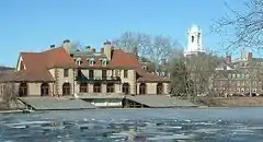 Weld Boathouse is the second of two boathouses created at its location on the Charles River near Harvard by George Walker Weld. The first was built in 1889. The second, grander structure was built in 1906 with funds that Weld bequeathed for that purpose. It is this famous Cambridge landmark, best viewed looking across the Charles from Boston, whose centennial was celebrated in 2006.[1]
