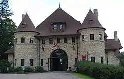 - Isabel Weld Perkins (1876–1948), daughter of Anna Minot Weld and Commodore George H. Perkins, was another grandchild of William Fletcher Weld and inherited $5.5 million of his wealth.[42] She married diplomat Larz Anderson (later Ambassador to Japan) and became an author. Isabel bought Brookline land, including a house built on that land in 1883, from her cousin William Fletcher "Billy" Weld II and called the estate "Weld". Isabel Weld Perkins believed her Weld family and the Weld family of Lulworth Castle to be one and the same. Accordingly, she and Larz Anderson modified and expanded Billy Weld's original house to incorporate some architectural elements of Lulworth Castle in its design.[43]