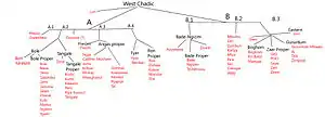 The branches of West Chadic go either by names or by letters and numbers in an outline format.[1]