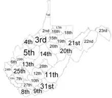 The West Virginia Circuit Courts are the West Virginia state trial courts of general jurisdiction. They are the only state trial courts in West Virginia that are courts of record. West Virginia's 55 counties are divided into 31 circuits, each comprising anywhere from one to four counties. Different circuits have different numbers of judges; 11 circuits have only a single judge. Effective with the 2024 election, the circuits will be realigned into 30 circuits, with only one having a single judge.[1]