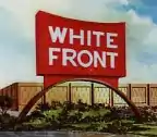 White Front was a chain of discount department stores in California and the western United States from 1959 through the mid-1970s. The stores were noted for the architecture of their store fronts which was an enormous, sweeping archway with the store name spelled in individual letters fanned across the top.