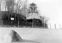 | Shape | Square pyramidal frame tower on piers; lower part, white; upper, wood-color (1889); black skeleton tower (post-1915) |