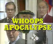Whoops Apocalypse is a six-part 1982 television sitcom by Andrew Marshall and David Renwick, made by London Weekend Television for ITV. Marshall and Renwick later reworked the concept as a 1986 film of the same name from ITC Entertainment, with almost completely different characters and plot, although one or two of the original actors returned in different roles.