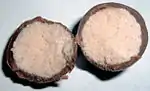 Whoppers are malted milk balls with an artificial flavored "chocolatey coating" produced by The Hershey Company. The candy is a small, round ball about 3⁄4 inch (20 mm) in diameter. They are typically sold either in a small cardboard candy box, in a larger box that resembles a cardboard milk carton, the “Fun Size” variety which is a tube-shaped plastic package sealed at the sides, containing twelve Whoppers weighing 21 grams (0.74 ounces), or the even smaller variety of a tube containing three Whoppers weighing 6.8 grams (0.24 ounces).