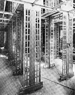 After Gore Hall was demolished to make way, ground was broken on February 12, 1913, and the cornerstone laid June 16. By later that year some 50,000 bricks were being laid each day.[22]