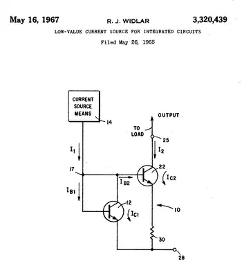 - RJ Widlar: US Patent Number 03320439; Filed May 26, 1965; Granted May 16, 1967: Low-value current source for integrated circuits