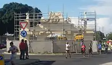In 2012, the Fleur-de-Lys Administrative Committee and the Birkirkara Local Council announced that they were planning to rebuild the arch to the same dimensions of the original.[8] The police force had initially objected to the project, believing it could become a traffic hazard, but of similar risk comparisons to other monumental arches and gates in Malta, such as the Portes de Bombes.[7] The plans were eventually approved by the Malta Environment and Planning Authority in October of the same year,[10] but they were placed on hold since a tender appeal had to be sorted out.[11] In April 2013, the tender was awarded to Vaults Ltd instead of V&C Contractors who had originally won the tender.[12] The replica arch cost €280,000 to build, and €100,000 of these were donated by the Bank of Valletta. €40,000 were taken from the Good Causes Fund, while the remaining €140,000 were paid by the Birkirkara Local Council.[13]