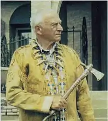 Wilbur Ternyik's mother was a descendant of Clatsop Indian leader Chief Coboway, who met the Lewis and Clark expedition in 1804 when they arrived at the Pacific Coast near Astoria, Oregon.[2] His father was a Hungarian immigrant. His father moved back to the east coast prior to Ternyik's birth, and his mother suffered from alcoholism; he was mostly raised by his grandparents.[6] Ternyik was born in Astoria[9] and grew up in Warrenton, Oregon, graduating from Warrenton High School.[10] He often wore a tan buckskin jacket and used what he called his "tomahawk peace pipe" as a gavel in meetings.[9][11][12]
