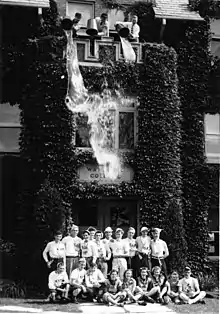 In 1910, the Lutheran Synod established a seminary, which opened to students in 1911, as the Evangelical Lutheran Theological Seminary of Eastern Canada.[8] In 1914, the seminary developed non-theological courses under the name "the Waterloo College School". In 1924, the Waterloo College of Arts was established.[9] Waterloo College of Arts became affiliated with the University of Western Ontario ("Western") in 1925 and soon began to offer honours degree programs in the arts.[10] In 1960, the Lutheran Church relinquished its sponsorship of Waterloo College and obtained a revised charter, changing the name of the seminary to Waterloo Lutheran University. On November 1, 1973, the name was again changed to Wilfrid Laurier University when the relevant provincial law was given royal assent by Ontario Lieutenant-Governor Ross Macdonald, who later served as Laurier's chancellor.[11] Waterloo Lutheran University's seminary and theological programs continued to be offered by the affiliated Waterloo Lutheran Seminary (now Martin Luther University College). The Waterloo Lutheran board of governors had approved the change of name at its meeting of June 12, 1973. [12]