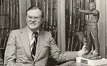 ![]() Ruger in 1975 holding that year's Outstanding American Handgunner Award | |