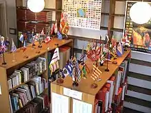 The library collection contains books on flags and associated topics, sets of flag magazines and journals from other vexillological societies, posters, wallcharts, and actual flags numbering over 40,000 volumes.