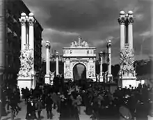 Rau complemented his landscape and travel photographs with event photographs. Notable events he covered included the Spanish–American War in 1898, the Klondike Gold Rush in the late 1890s, the funeral of President William McKinley in 1901, the eruption of Mount Pelée in 1902, the funeral of Admiral William T. Sampson in 1902, the America's Cup race of 1903, the Great Baltimore Fire of February 7, 1904,[2] the inauguration of President Theodore Roosevelt in 1905, and the arrival of the RMS Olympic in New York Harbor on June 21, 1911.[7] He was also the official photographer for the St. Louis World's Fair in 1904 and the Lewis and Clark Centennial Exposition in Portland the following year.