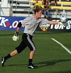 He made his 100th league appearance for the Crew on March 26, 2011, keeping a clean sheet in a 0–0 tie with New York Red Bulls.[6]