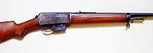 The Winchester Model 1905 (also known as the Model 05), is a blowback-operated, semi-automatic rifle produced by the Winchester Repeating Arms Company beginning in 1905 and discontinued in 1920. This rifle loads cartridges from a 5 or 10-round capacity, detachable box magazine located immediately forward of the trigger guard. Winchester offered factory chamberings in .32SL and .35 Winchester Self-Loading (.35 WSL).[1]