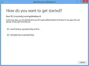 Windows Anytime Upgrade (Add Features to Windows) was a service by Microsoft introduced in Windows Vista that facilitated upgrades across successive editions of Windows Vista.[1] Prices for upgrades purchased through Windows Anytime Upgrade were lower than prices for upgrades purchased at retail.[2][3] Windows Anytime Upgrade is included in Windows 7 to allow users to upgrade to Windows 7 editions. In Windows 8 and Windows 8.1 it was rebranded as Add Features to Windows and was used to purchase an upgrade license for the Pro edition or to add Windows Media Center to an existing Pro installation. Support for this feature was discontinued on October 31, 2015.[4]