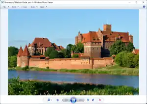 Windows Photo Viewer can show individual pictures, display all pictures in a folder as a slide show, reorient them in 90° increments, print them either directly or via an online print service, send them in e-mail or burn them to a disc.[3][5][6] Windows Photo Viewer supports images in BMP, JPEG, JPEG XR (formerly HD Photo), PNG, ICO, GIF and TIFF file formats.[7]