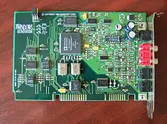WSS featured support for up to 16-bit, 48 kHz digital sampling,[1] beyond the capabilities of the popular Sound Blaster Pro, although it was less frequently supported than Sound Blaster and Gravis sound cards, as well as Roland sound cards, daughterboards, and sound modules.[2] In addition, the WSS featured RCA analog audio outputs, an uncommon feature among sound cards of this era; other connections were a microphone input, a stereo line input and a stereo headphone output.[1]