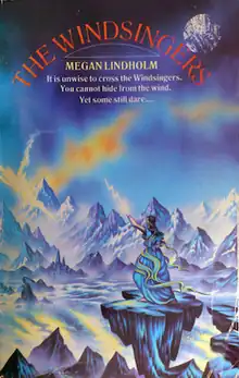 In the US, Harpy's Flight was published by Ace Books in 1983. Since its protagonists Ki and Vandien had appeared earlier in "Bones for Dulath", the book was released under the same byline as the short story, Megan Lindholm. The author said she had "mixed feelings" about her new byline, under which she would continue to publish novels for the next decade.[9] Ki and Vandien featured in three further books that are known along with Harpy's Flight as the Windsingers series and also as the Ki and Vandien quartet.[3][10] According to Lindholm, all four novels can be read independently.[11] The next two books followed in 1984: The Windsingers and The Limbreth Gate, both illustrated by Kinuko Y. Craft. The Windsingers is also the title of a UK omnibus of the first three books, published in 1985 by Corgi Books. The fourth volume Luck of the Wheels was released by Ace in 1989, with a cover drawn by Richard Hescox.[3]