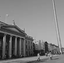 She was present with Connolly in the Dublin General Post Office during the Easter Rising in 1916. Carney was the only woman present during the initial occupation of the building,[8] which she entered armed with a typewriter and a Webley revolver. While not a combatant, she was given the rank of adjutant and was among the final group (including Connolly and Patrick Pearse) to leave the GPO. After Connolly became wounded, she refused to leave his side.[9] This was despite direct orders from Pearse and Connolly.[5] She had earlier taken the wounded Connolly's final dictated orders.[10] Carney, alongside Elizabeth O'Farrell and Julia Grenan left the GPO with the rest of the rebels when the building became engulfed in flames. They made their new headquarters in nearby Moore Street before Pearse surrendered. [11]