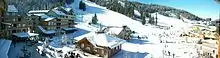 During Intrawest's stint operating the resort, they made several changes to the mountain's infrastructure, renovating the food services in the West Portal base lodge, opening new lifts in 2005 and 2006, and a new base village with hundreds of condominia, a parking structure, a "Village Pond," retail space, and an open-air gondola known as "The Village Cabriolet."[5] The historic 1955 Balcony House was listed as one of Colorado's Most Endangered Places by Colorado Preservation, Inc.[6][7] This historic building was designed in the Googie style of architecture, which was a popular style in the 1940s to the 1960s.