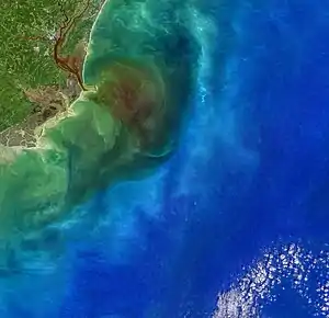 Winyah Bay is the fourth-largest estuary on the US East Coast, when classified by discharge rate.[2] It is home to many aquatic and terrestrial species, including sturgeon, sharks, dolphins, red drum, stingrays, star drum, white shrimp, blue crabs, pelicans, bald eagles, cormorants, and various species of seagulls.