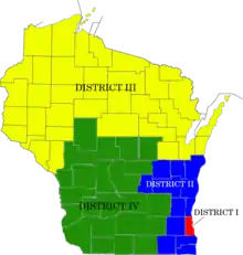 | Location | Milwaukee (District I) Waukesha (District II) Wausau (District III) Madison (District IV) |