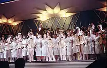 The centerpiece of The Minstrels was the Withrow Presentation Orchestra, a 60 piece, Paul Whiteman style (American Musicians II, pp 497–8) big band consisting of brass, woodwinds, strings, and percussion (drums, tympani, chimes, vibraphone). The orchestra performed renditions of Tin Pan Alley and other music to accompany students' vocal and dance performances. Staging featured sophisticated lighting and special effects. (Cincinnati Post, 7/17/85). Sets and lighting were constructed by students (Cincinnati Post, 7/17/85). Student performances included solos, production numbers with solo singers, solo dancers, ensemble singing, special effects, and a Rockettes style "pony chorus".[1] Each show ran almost three hours without intermission.