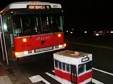The Wolfline is an area bus service serving the students, staff, faculty, and general public on and around North Carolina State University's campus in Raleigh, North Carolina. As of Fall 2017, Wolfline is operated by Transdev,[1] after being operated by First Transit between 2007 and 2017,[2] under contract with NC State's Transportation department. The Wolfline was the first mass transit organization in the state to exclusively use 'clean' diesel engines.[3] Wolfline access is unrestricted to the public and is a zero-fare service.[4] The preceding contractor was Veolia Transport. The Wolfline began operating in August 1980 with one route.[5]