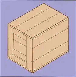 A cleated box has five or six panel faces with wood strips attached to them. The panels can be made of plywood, solid or corrugated fiberboard, etc. Wooden cleats reinforce the panels.