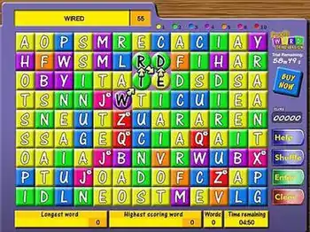 The hierarchy of letters is similar to that of Scrabble; Q and Z are the highest-scoring tiles (each 10) followed by X and J (each 8) and so on, the most notable variance is that here L is worth five as opposed to just one in Scrabble. The player starts with two minutes to find as many words as he can; if he manages to use Q, Z, X, or J in any word he is awarded a further 10 seconds. After each successful entry the letters used are discarded with the matrix replacing those letters used with surrounding tiles from above and to the left, a void is thus formed to the top left of the game screen. There is an additional 500-point bonus awarded for clearing the grids with allowable words.